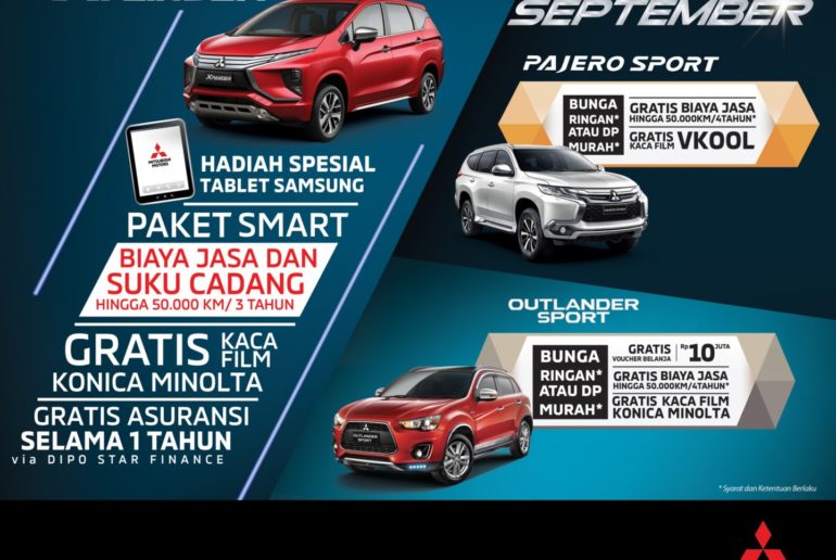 PT Mitsubishi Motors Krama Yudha Sales Indonesia (MMKSI), distributor resmi kendaraan Mitsubishi Motors di Indonesia, kembali menyelenggarakan program menarik untuk konsumen Mitsubishi yang melakukan pembelian kendaraan di bulan September 2018 (tanggal validasi faktur).